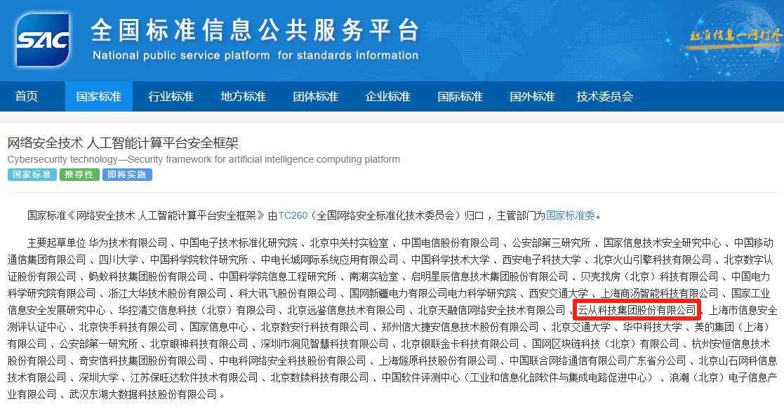 近日,國家標(biāo)準(zhǔn)GB/T 45958-2025《網(wǎng)絡(luò)安全技術(shù) 人工智能計算平臺安全框架》正式發(fā)布。該標(biāo)準(zhǔn)由全國網(wǎng)絡(luò)安全標(biāo)準(zhǔn)化技術(shù)委員會歸口管理,華為技術(shù)有限公司牽頭,云從科技作為核心起草單位之一,深度參與了標(biāo)準(zhǔn)制定工作。 這項將于2026年2月1日正式實(shí)施的國家標(biāo)準(zhǔn),為人工智能計算平臺建立了系統(tǒng)化的安全框架,規(guī)定了安全功能、安全管理和角色安全職責(zé),將有效應(yīng)對硬件漏洞、訓(xùn)練數(shù)據(jù)泄露、對抗樣本攻擊等新型安全威脅。